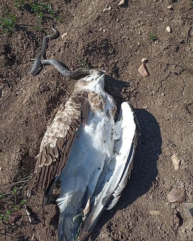Las imágenes de hoy muestran una escena especialmente trágica y poco común: un ejemplar de águila culebrera (Circaetus gallicus) ha muerto electrocutada tras cazar una serpiente y posarse sobre una torreta eléctrica.