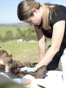 Extraemos muestras de sangre y plumas para estudiar la presencia de antibióticos en el entorno, niveles de plomo y evaluar su estado general como edad, salud y mucho más.